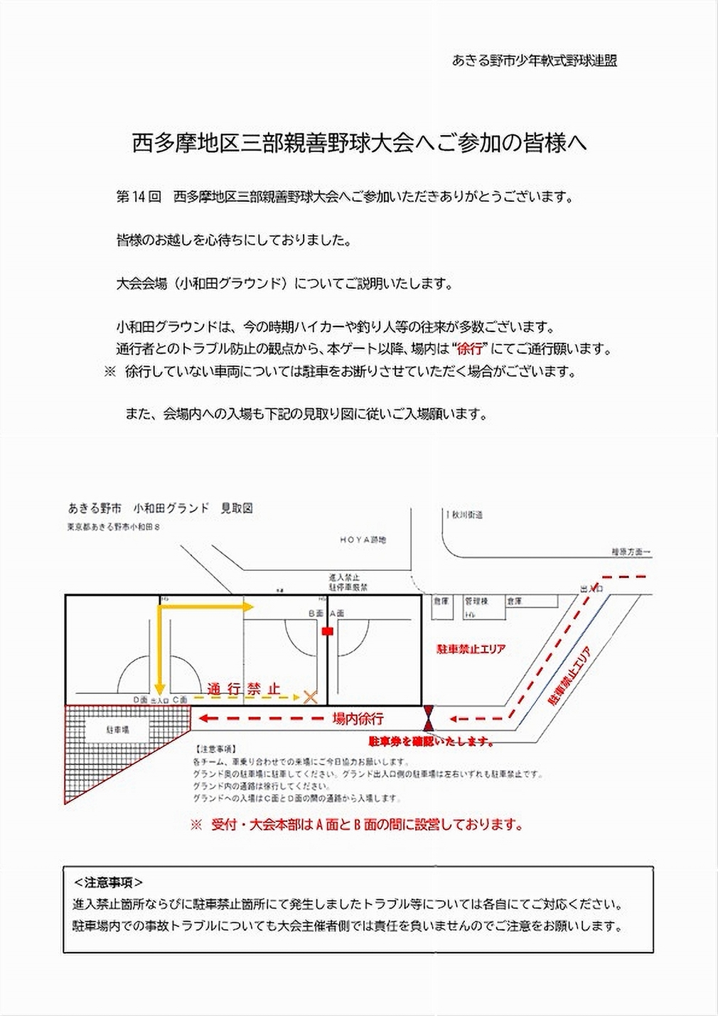 | 小和田D | D面の芝生部分を練習場とします。 ※ 午前8時前の使用不可・バッティング練習不可 | |||||||