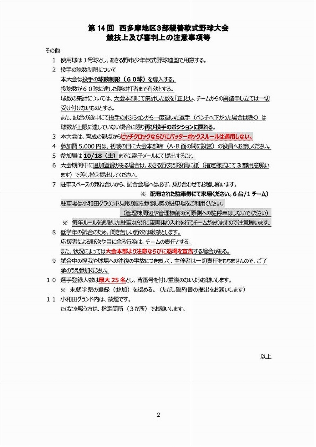 | 2 | 10:10-11:10 | ⑩ | 羽村混成 | 降雨 中止 |